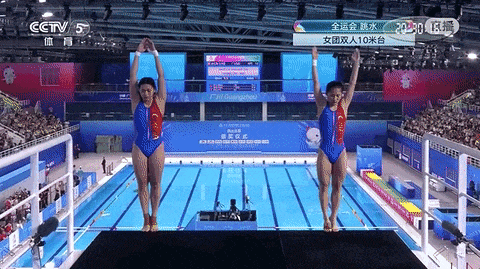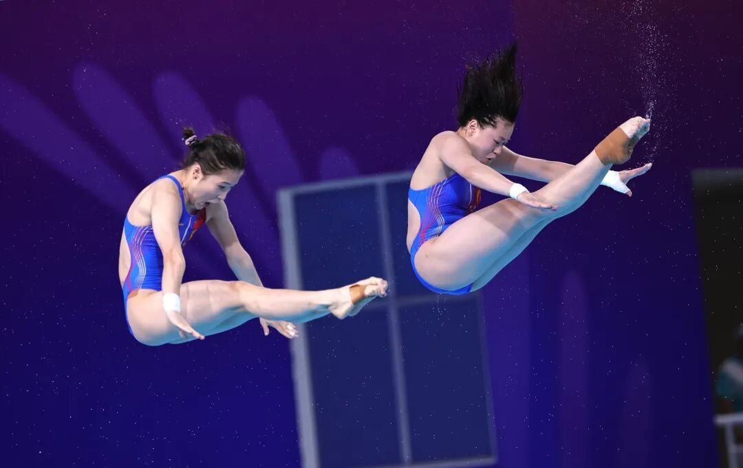 全红婵/王伟莹在女子团体双人10米跳台比赛中