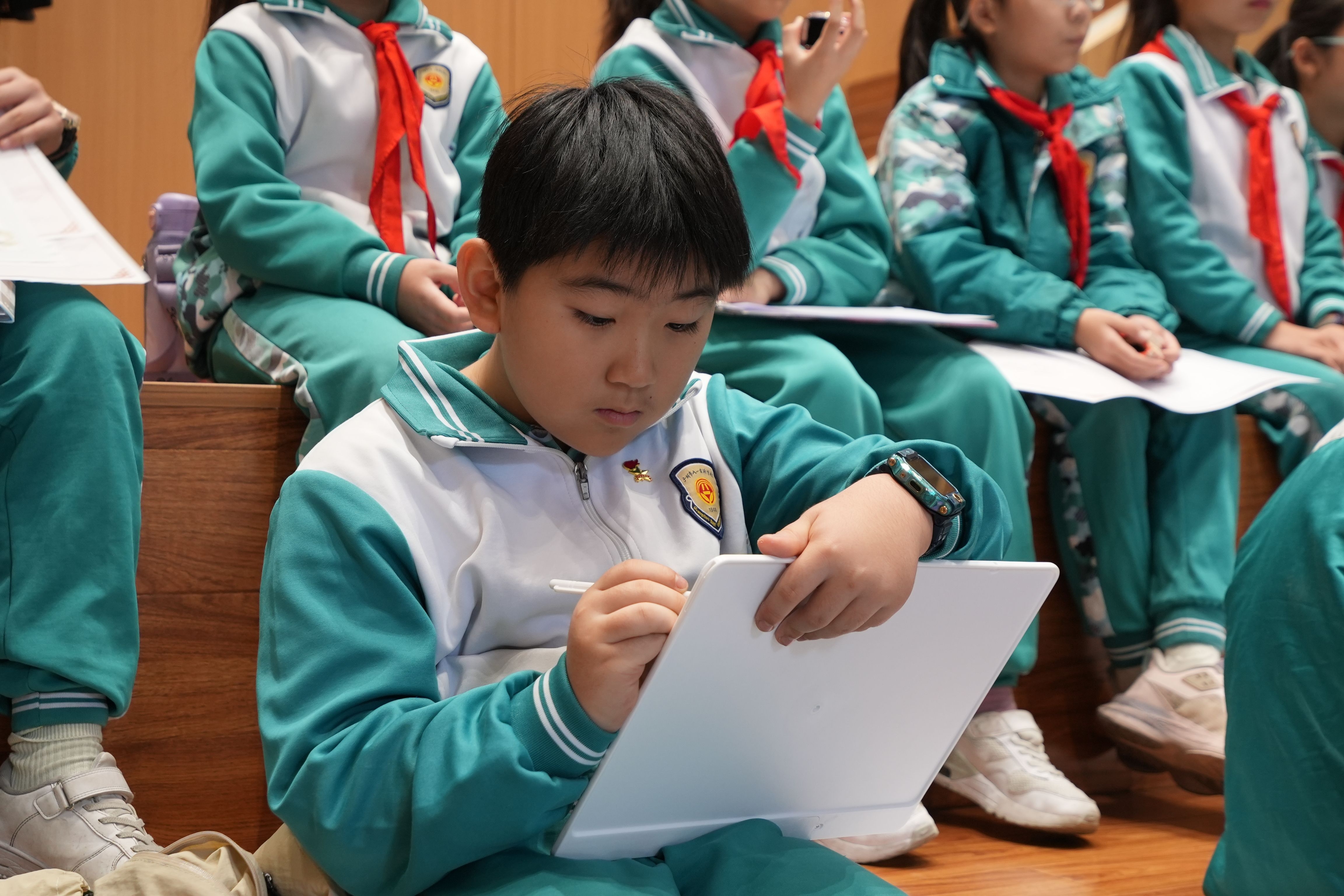 同学们或侧耳倾听,或凝神构想,或奋笔疾书,将参观所感、心中所悟化作一行行真挚的诗句,以童真视角与诗意语言,致敬英雄,礼赞时代,畅想未来。