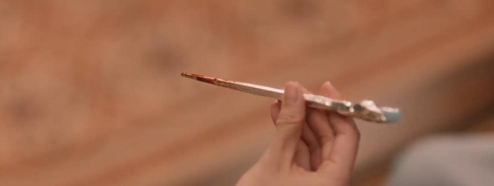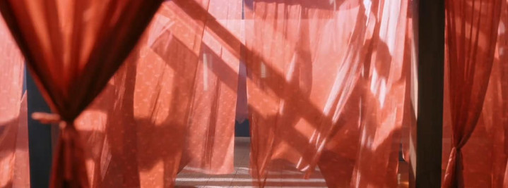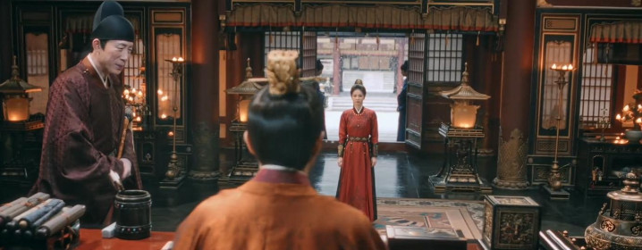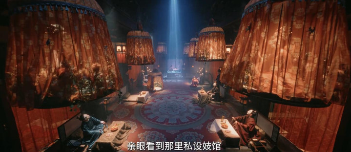 但当李佩仪手持卷宗,快步冲过这片红色迷雾时,帐幔却成了割裂视线的屏障,既挡住了背后的窥探,也暗示着真相被层层遮蔽。