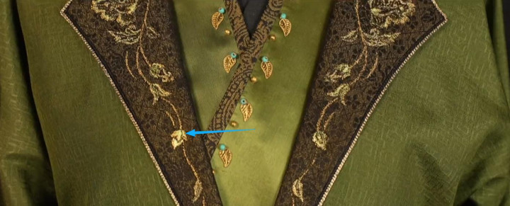 从朱红、深绛到蓝绿、柳绿,高饱和度的衣服色彩,搭配金线、银线、孔雀羽线等奢华材质。