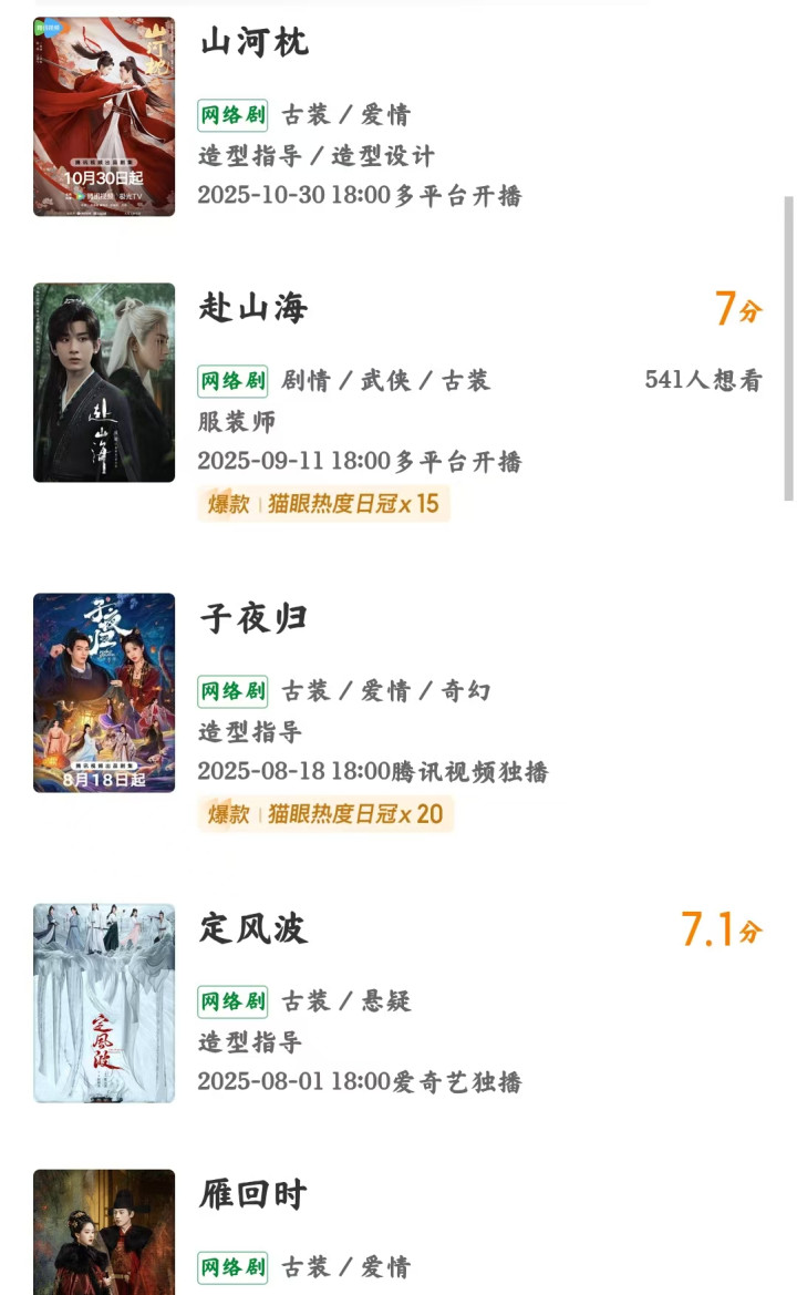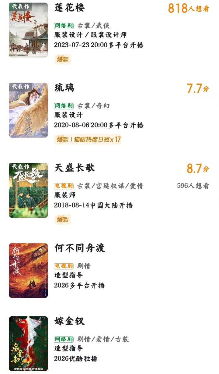 以及《大奉打更人》《深潜》《一念关山》《宁安如梦》《卿卿日常》等爆火剧集做过造型指导。