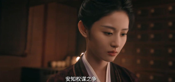 妆容素雅干净,仅用细眉和浅唇点缀,高发髻上的银色发冠简洁利落,完美贴合她身处复杂环境却保持初心的人设。