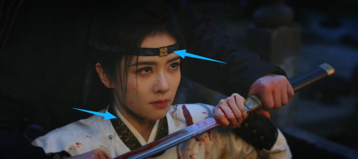 更绝的是她的蓝黑色劲装,玄色底布上用金线织出暗龙纹,在光线下若隐若现,像极了她外冷内热、暗藏锋芒的性格。