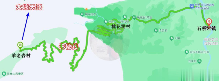 ①起点是羊老岩村,终点是桃花洞村,不可反向。