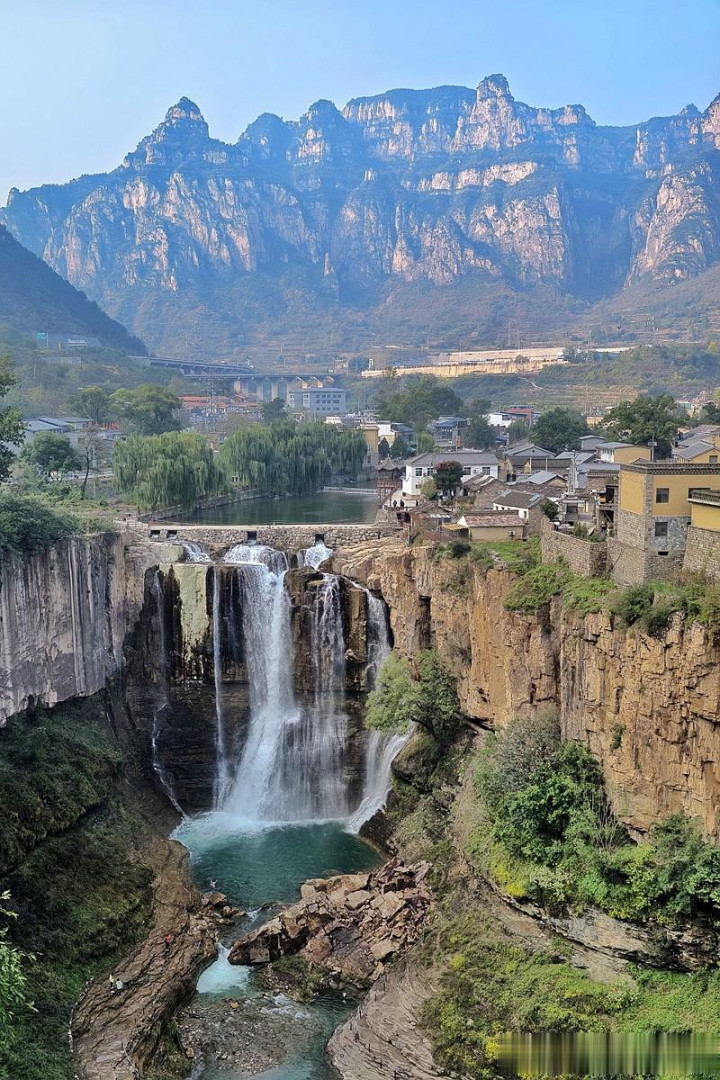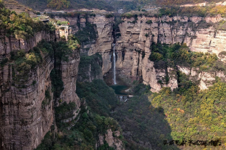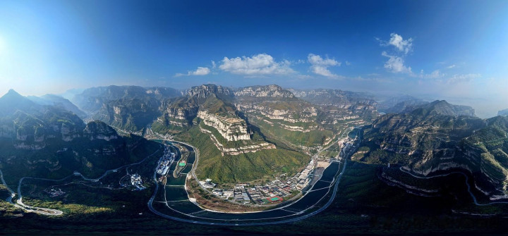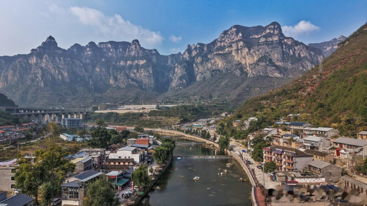 石板岩镇,上方玻璃栈道位置即为太行大峡谷景区