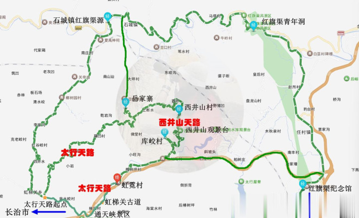 这是一个自驾环线,以虹霓村为起点终点。整体感觉太行天路一般,西井山天路值得一走。
