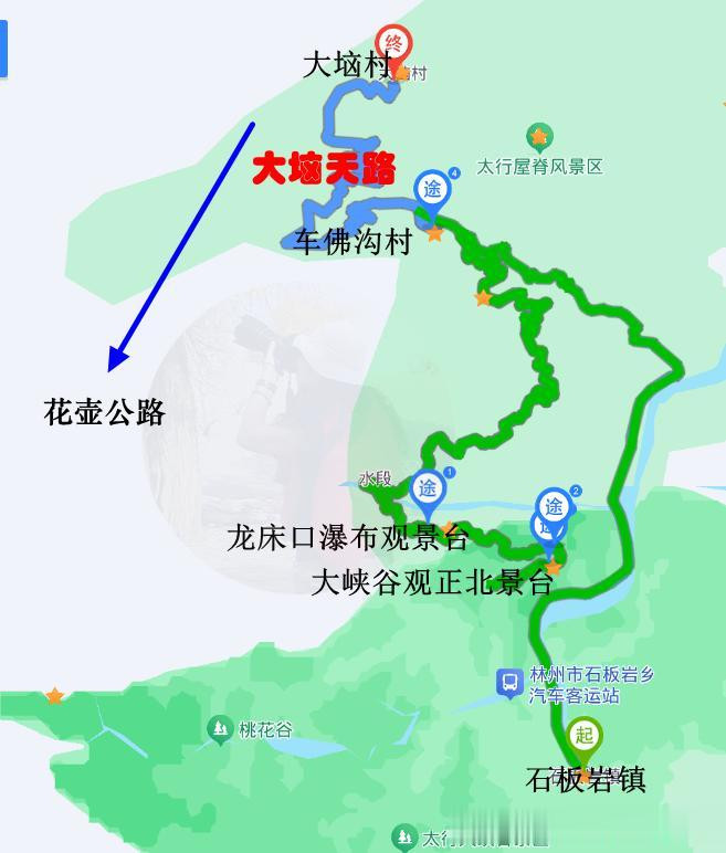 石板岩镇→大垴天路(车佛沟村-大垴村)→管洞水观景台→花壶公路,约90公里,可在金灯寺附近住宿,也可继续前往南太行南线。