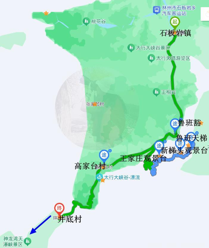 目前井底村至神龙湾挂壁公路处于封闭施工状态,我是专程跑一趟再返回石板岩镇:石板岩镇→王家庄观景台(俯瞰石板岩镇)→新梯头观景台→鲁班天梯&壑嘴观景台(俯瞰林州市,云海日出最佳观赏点)→高家台→井底村→石板岩镇,往返不到50公里。