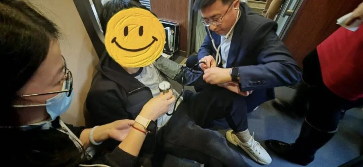 同行的医生袁轶俊和张燕军得知情况,也从其他车厢赶到现场,配合张军根抢救。尽管患者情况暂时稳定,但为防范病情可能出现反复或恶化,张军根团队并未离开。他们全程守护在患者身边,密切观察,给予安慰和关怀,并叮嘱患者到站后要尽早去医院进一步检查及相关注意事项,直至列车抵达目的地。